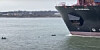 Uhyggelig video: Mand tæt på at blive sejlet over af containerskib En mand måtte springe fra sin båd og svømme alt hvad han kunne for ikke at blive suget under vandet, da han pludseligt befandt sig i en jolle foran et 400 meter langt containerskib.